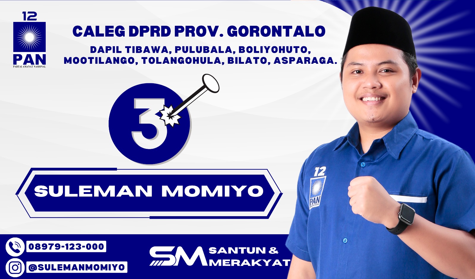 KOMPARASI.ID, Gorontalo – Sebuah tanah yang subur dan kaya akan potensi, menjadi saksi perjalanan hidup Suleman Momiyo, seorang calon anggota legislatif DPRD Provinsi Gorontalo yang berasal dari Partai Amanat Nasional (PAN), Dapil Kabupaten Gorontalo.