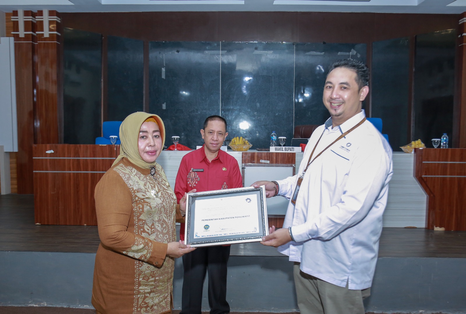 Piagam penghargaan diserahkan oleh Plt Kepala Perwakilan Ombudsman RI Provinsi Gorontalo, Wahyudin Mamonto, kepada Wakil Bupati Pohuwato, Suharsi Igirisa, di aula Dinas PUPR Pohuwato pada Senin, (22/12024).