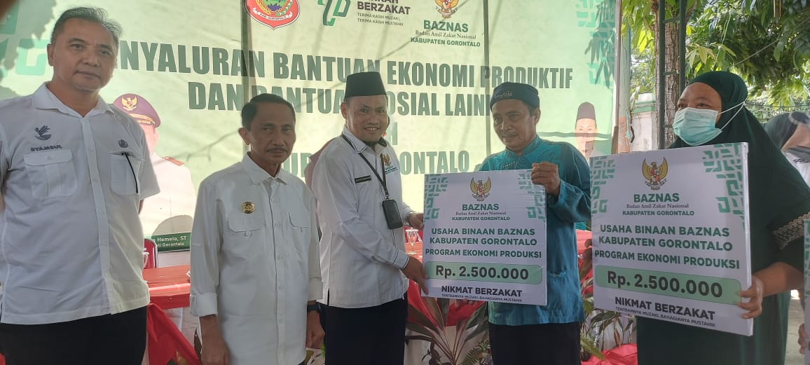 Bantuan Ekonomi Produktif dan Bantuan Sosial ini, diberikan oleh Pemerintah Daerah Kabupaten Gorontalo dan Badan Amal Zakat Nasional (Baznas) kepada masyarakat Kabupaten Gorontalo.