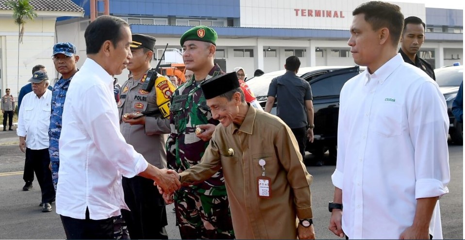 Presiden Jokowi jabatan tangan bersama Bupati Gorontalo Nelson Pomalingo.