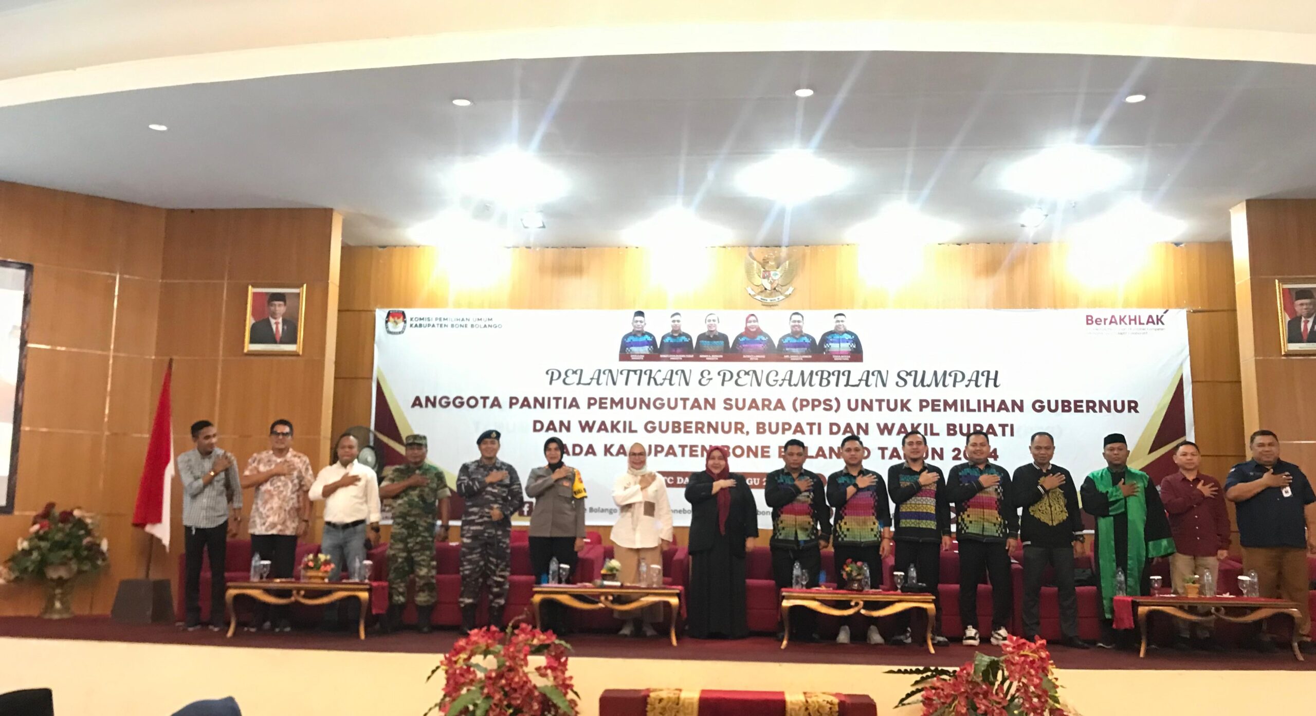 KOMPARASI.ID – Komisi Pemilihan Umum (KPU) Bonebolango melantik dan mengambil sumpah 495 anggota panitia pemungutan suara (PPS) pada Pemilihan Gubernur dan Wakil Gubernur, Bupati dan Wakil Bupati tahun 2024.