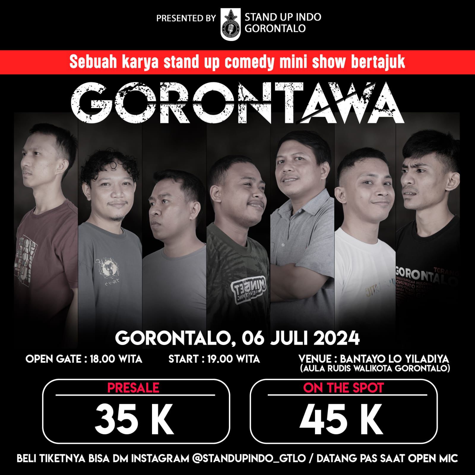 Jangan lewatkan kesempatan untuk hadir dan menyaksikan penampilan para komika berbakat dari Gorontalo.