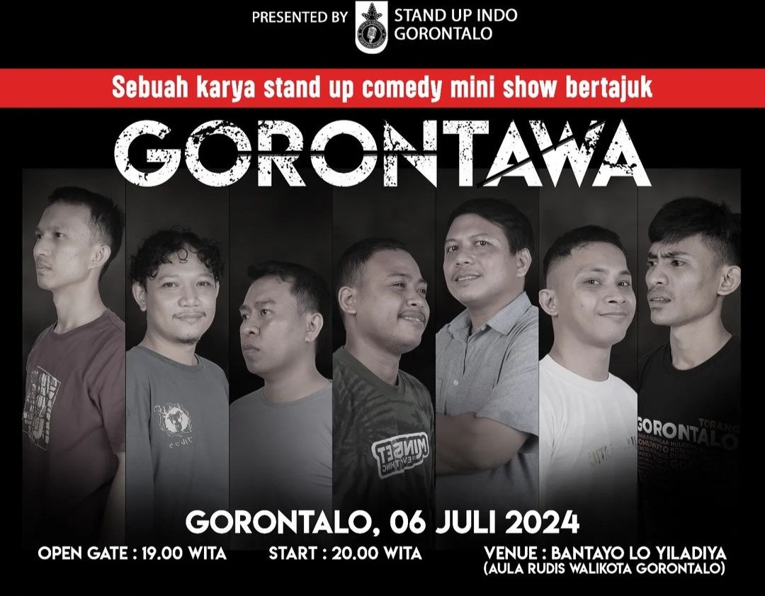Acara stand-up comedy bertajuk “GORONTAWA” siap mengocok perut penonton di gedung Yiladia, Walikota Gorontalo, yang terletak di Jl. Nani Wartabone. Sabtu (6/7/2024), Pukul 19.30 WITA