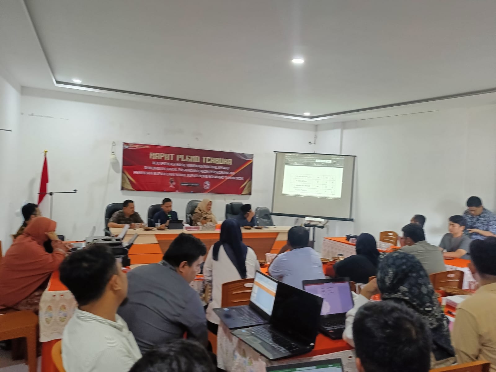 KOMPARASI.ID – Komisi Pemilihan Umum (KPU) Bone Bolango menggelar Rapat Pleno Terbuka, Rekapitulasi Hasil Verifikasi Faktual di Kantor KPU Bone Bolango pada Jumat (12/7/2024).