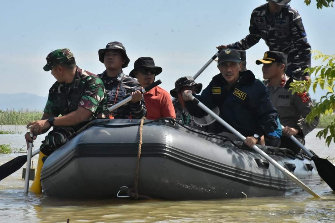 Suara dayung yang menyentuh air terdengar jelas saat mereka menggunakan perahu untuk menyusuri genangan air, menegaskan keseriusan Pemerintah Daerah dalam menangani bencana yang melanda wilayahnya.