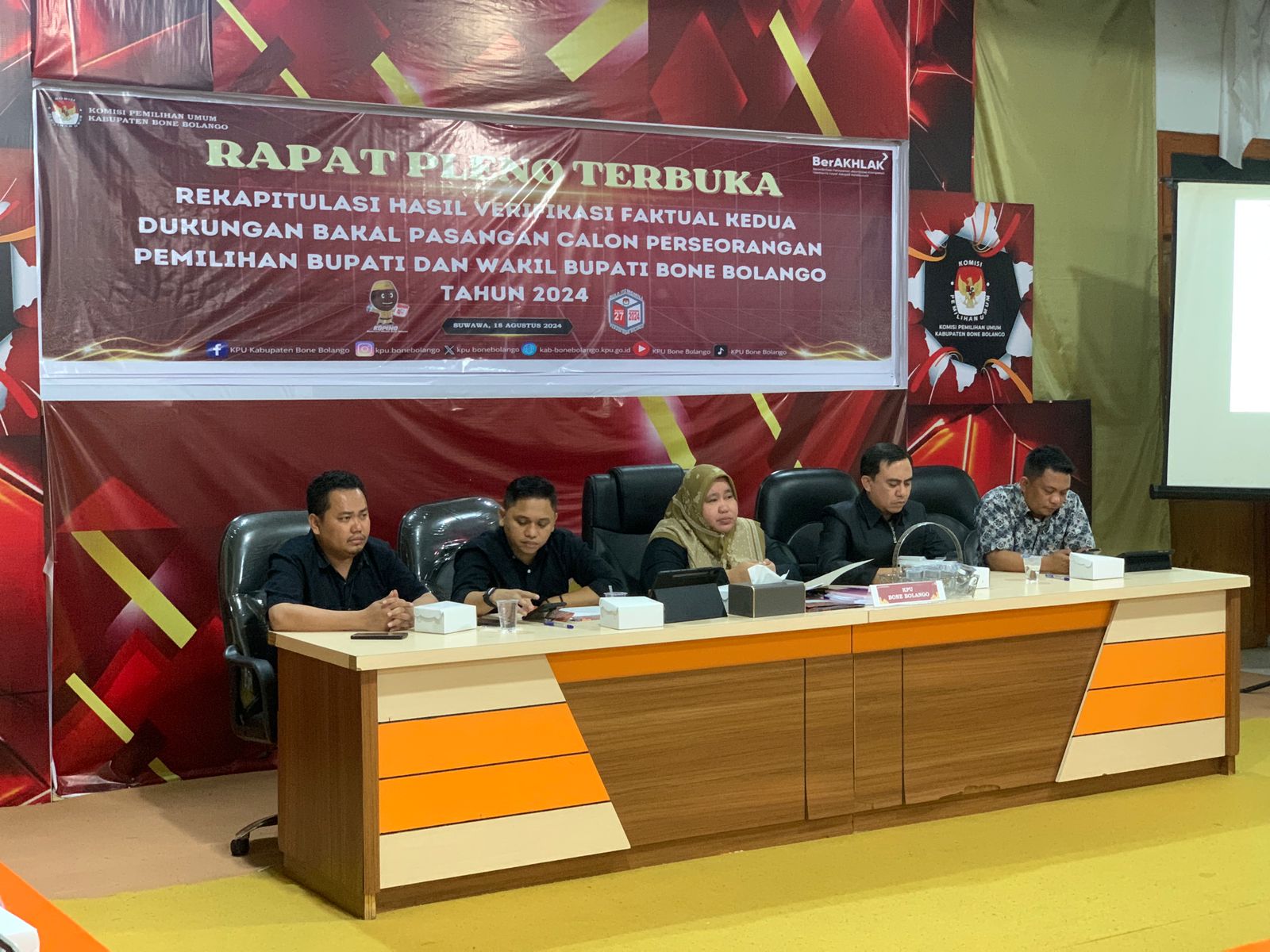 KOMPARASI.ID – Komisi Pemilihan Umum (KPU) Kabupaten Bone Bolango menggelar rapat pleno terbuka rekapitulasi hasil verifikasi faktual kedua terkait dukungan bakal pasangan calon bupati dan wakil bupati Bone Bolango tahun 2024.