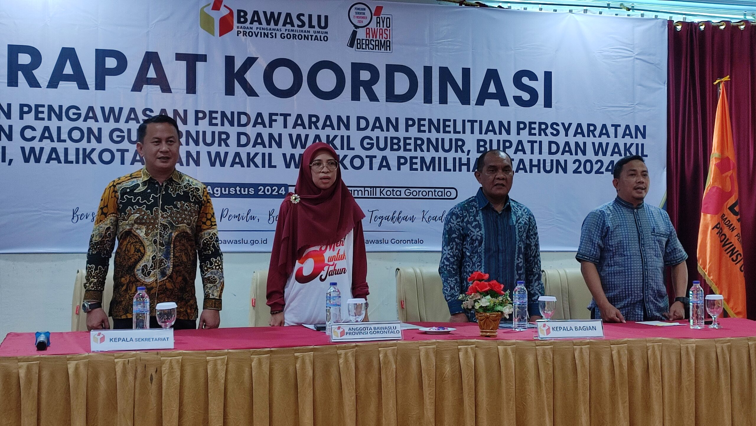 KOMPARASI.ID – Badan Pengawasan Pemilu (Bawaslu) Provinsi Gorontalo menggelar Rapat Koordinasi (Rakor) dengan Bawaslu Kabupaten dan Kota. Senin (25/8/2024)