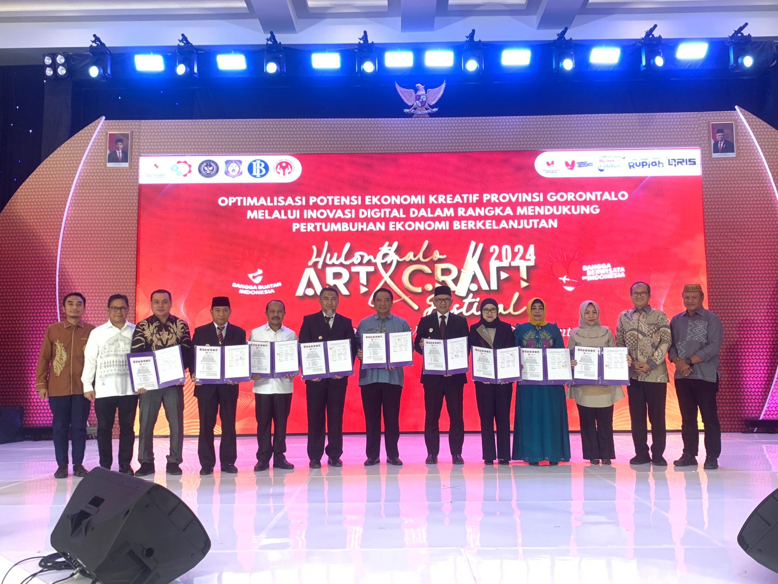 Dalam acara tersebut, para pimpinan kabupaten/kota di Gorontalo menandatangani Memorandum of Understanding (MoU) untuk membangun ekosistem ekonomi kreatif berbasis digital di wilayah masing-masing.