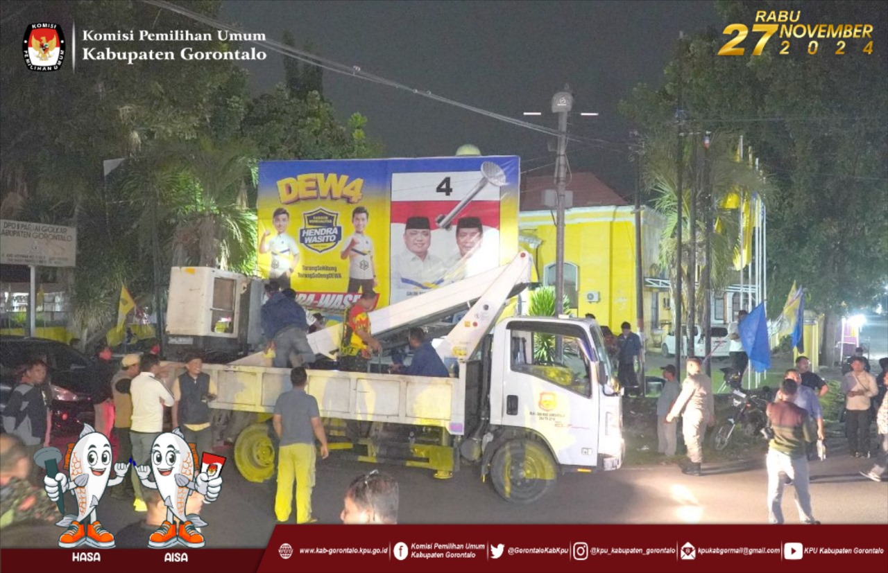 KOMPARASI.ID Komisi Pemilihan Umum (KPU) Kabupaten Gorontalo menggelar apel pembersihan Alat Peraga Kampanye (APK) Pemilu 2024 pada Sabtu, (23/11), pukul 23.45 WITA di depan Kantor KPU Kabupaten Gorontalo.