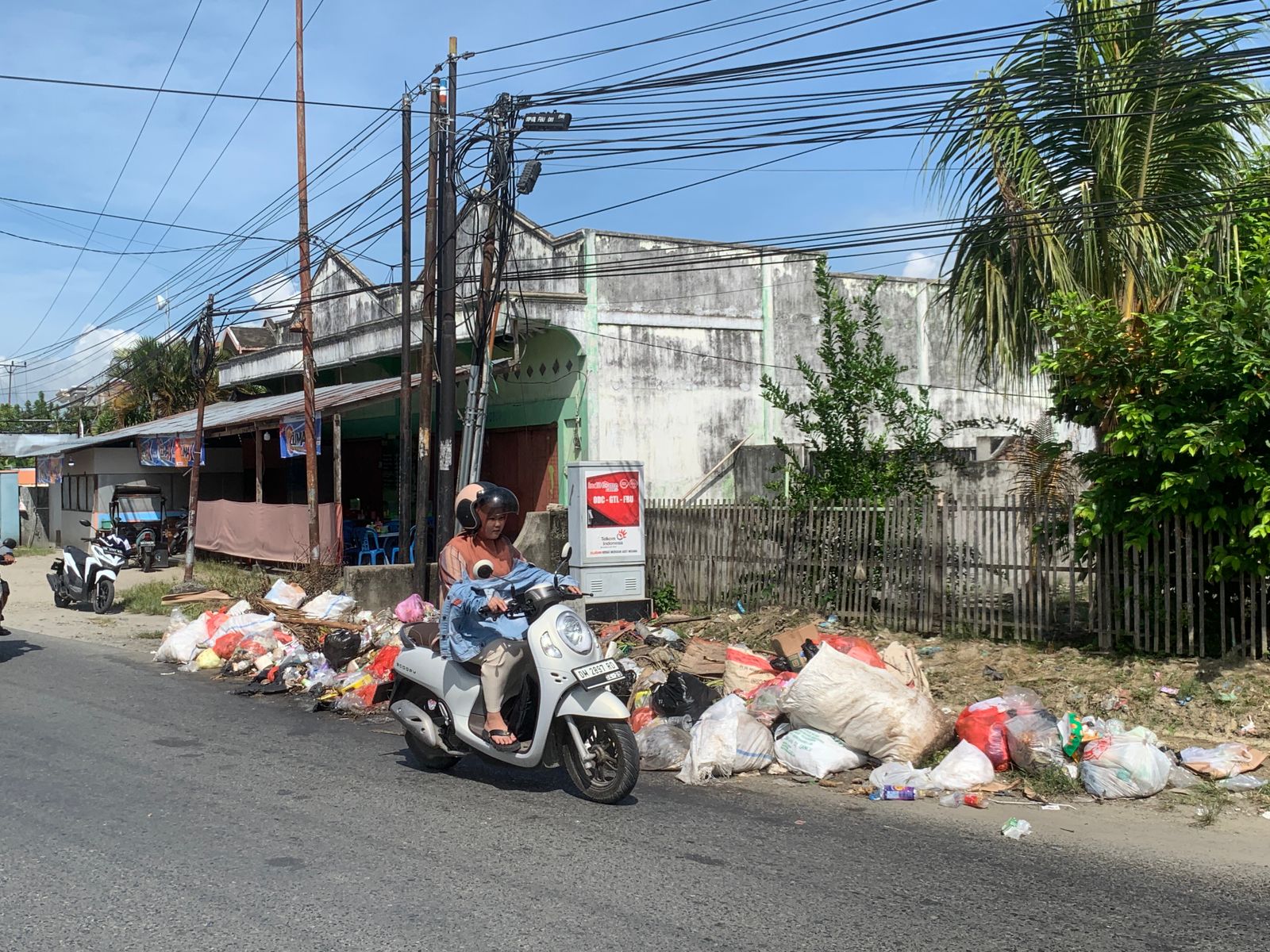 Setiap hari, warga dan pengguna jalan harus menghadapi aroma menyengat dari sampah rumah tangga yang dibiarkan begitu saja di pinggir jalan.
