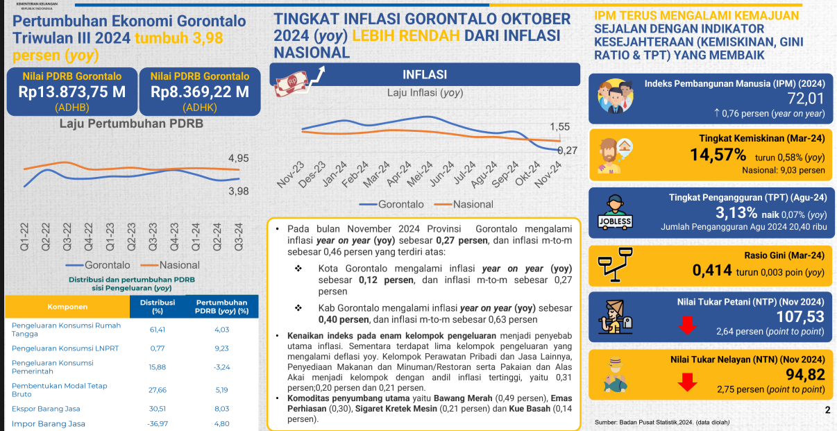 Ekonomi Gorontalo Triwulan III 2024 Tumbuh 3,98 Persen, IPM Meningkat, KUR Capai Rp 503,81 M