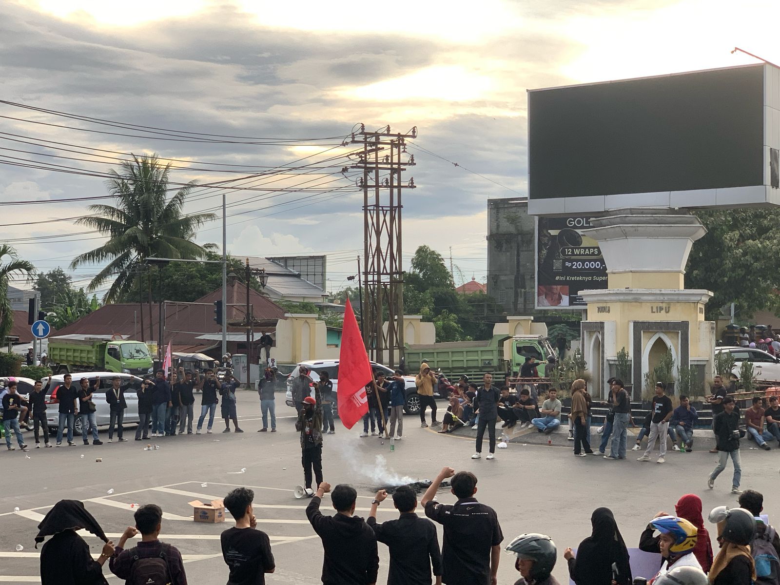 KOMPARASI.ID, Gorontalo – Sejumlah mahasiswa yang tergabung dalam Aliansi Mahasiswa Cipayung Plus Gorontalo menggelar aksi unjuk rasa bertajuk “Indonesia Gelap” di Perlimaan Telaga, Kabupaten Gorontalo, Jumat (28/2/2025).