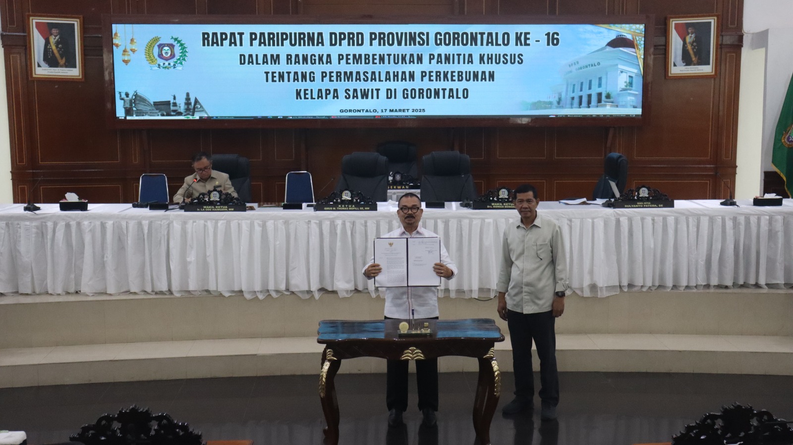 KOMPARASI.ID – DPRD Provinsi Gorontalo resmi membentuk Panitia Khusus (Pansus) untuk menangani persoalan perkebunan kelapa sawit di Kabupaten Gorontalo.