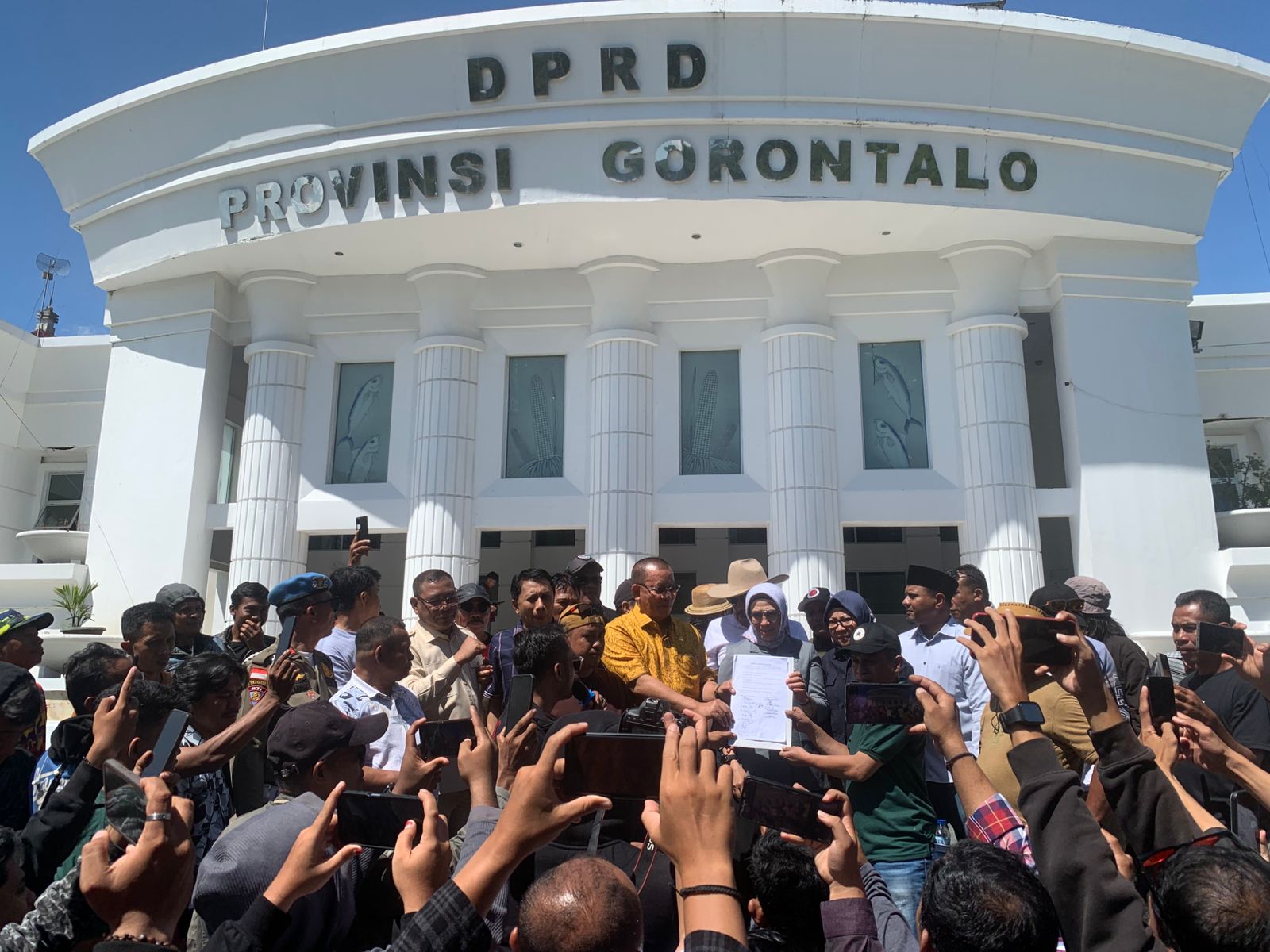 Aksi berlangsung tertib dan mendapat tanggapan dari DPRD. Sejumlah perwakilan massa diterima oleh Panitia Khusus (Pansus) Pertambangan DPRD Gorontalo di ruang paripurna.