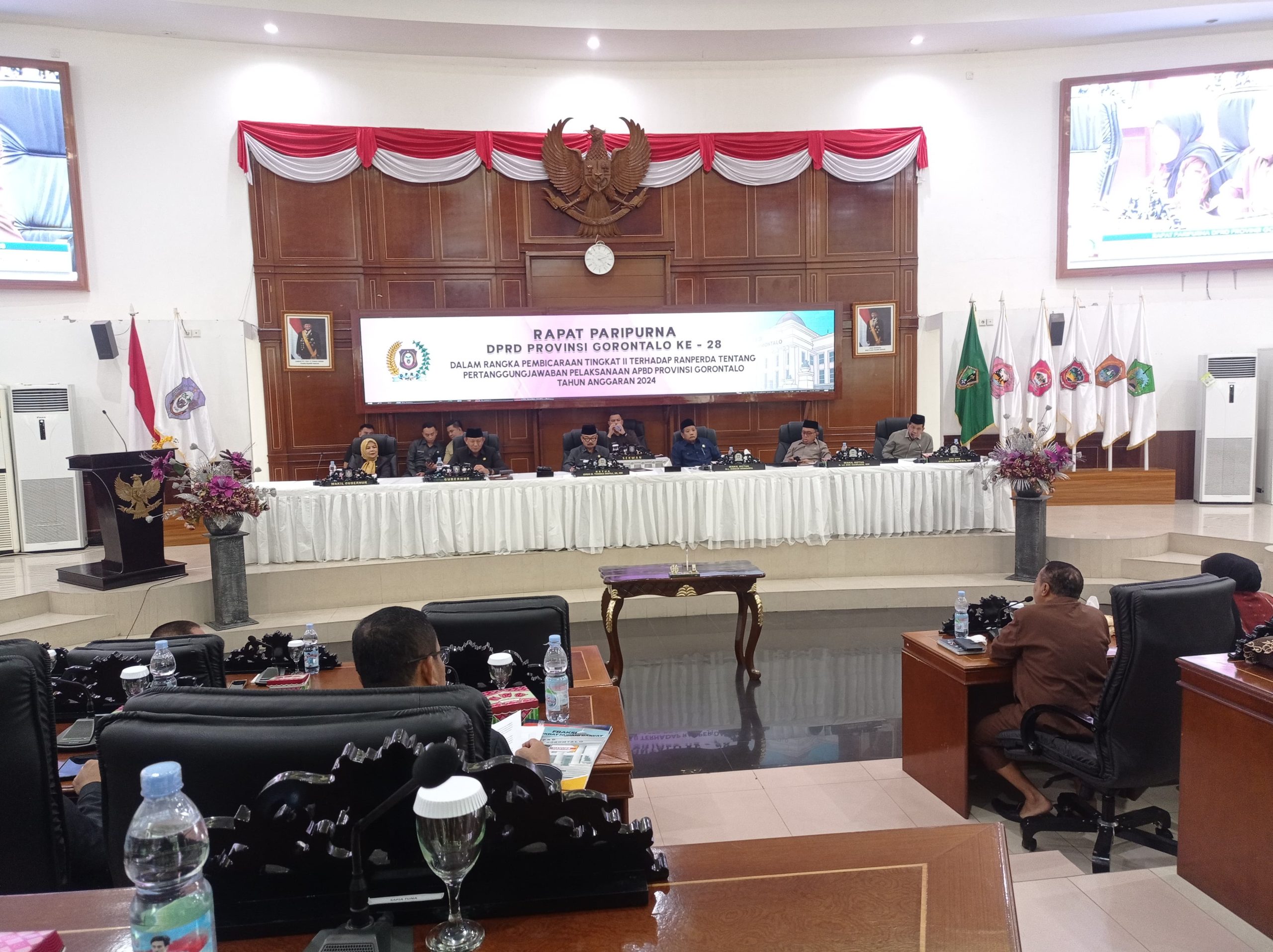 Pengesahan Perda ini ditandai dengan disetujuinya pertanggungjawaban APBD 2024 oleh seluruh fraksi DPRD Provinsi Gorontalo melalui rapat Paripuran DPRD Provinsi Gorontalo yang ke-28, selasa (08/07/25).
