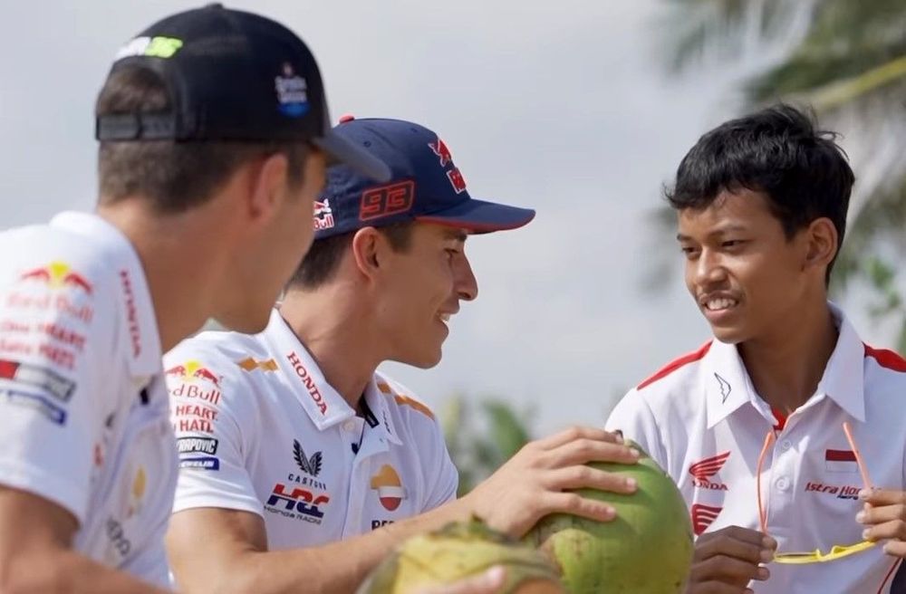 Pelatih tim VR46 hanya bisa menggeleng, melihat anak didiknya “dikerjai” pembalap Asia Tenggara berusia 16 tahun itu.